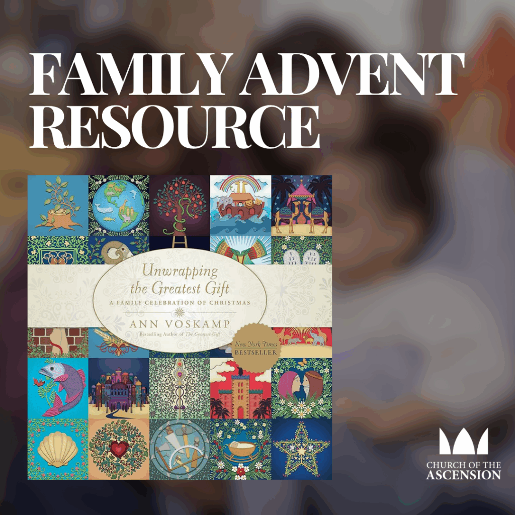 This December, we are encouraging families to use a Jesse Tree to prepare for and anticipate the birth of Christ. Ann Voskamp’s Unwrapping the Greatest Gift guides families through making a Jesse Tree by retelling famous Bible stories with an emphasis on how they foreshadow Jesus. Each short and beautifully illustrated story comes with discussion questions and an ornament. Stop by the welcome desk between services on November 16, 23, and 30 to pick up the book and an ornament-making kit.