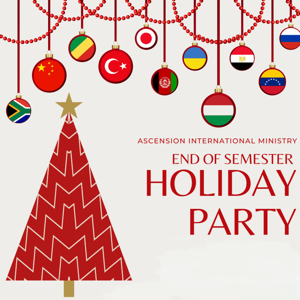 You are invited! Saturday, December 13 from 5:30pm – 8:30pm. Internationals and Ascensionites will mingle on this evening designed with music, carols, word games, food, and even a tour of the Nave! Plan on bringing your favorite seasonal food.
